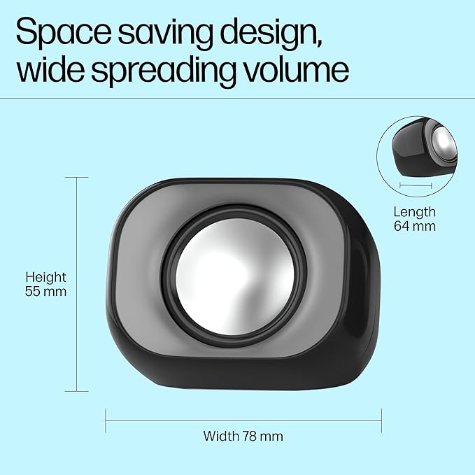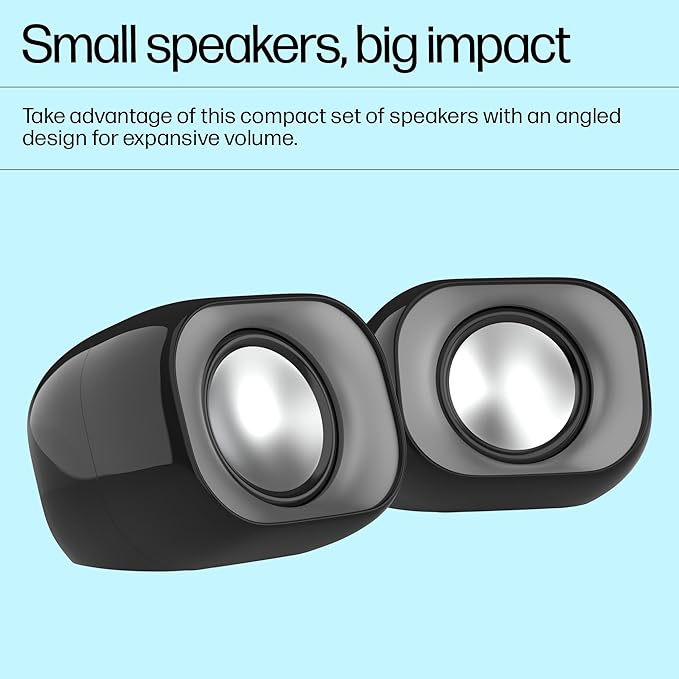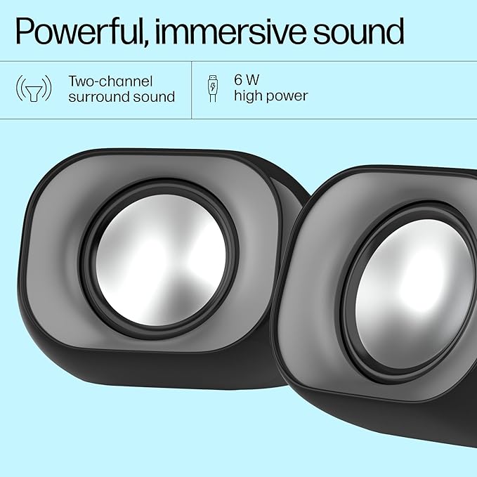 HP DHS-2111 Wired Speaker, 2-Channel Surround Sound, 3.5mm aux connectivity, PC and Phone Compatible, Easy Volume Controls, 1-Year Warranty, Black