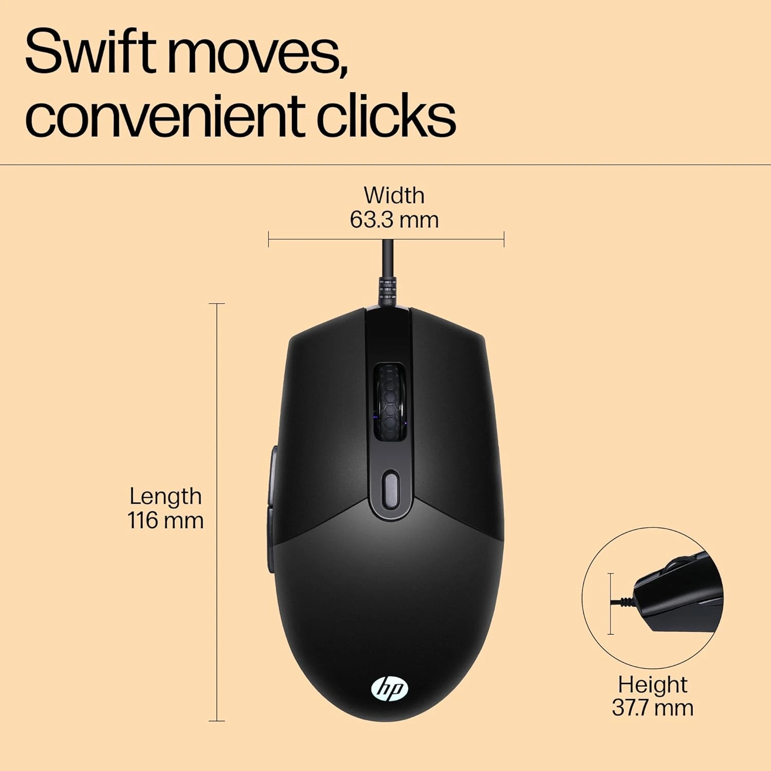 Home Peripherals HP M260 RGB Backlighting USB Wired Gaming Mouse, Customizable 6400 DPI, Ergonomic Design, Non-Slip Roller, Lightweighted ,Black