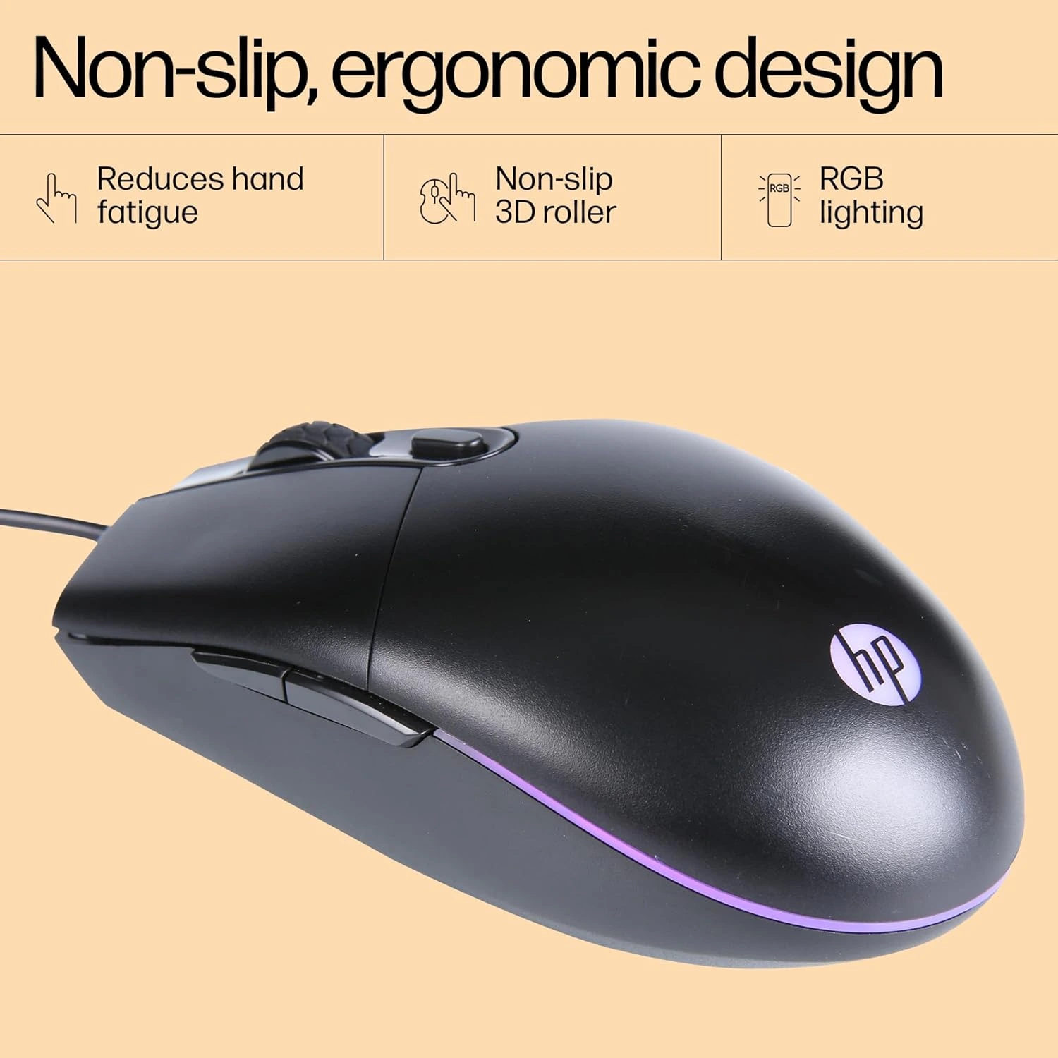 HP M260 RGB Backlighting USB Wired Gaming Mouse, Customizable 6400 DPI, Ergonomic Design, Non-Slip Roller, Lightweighted ,Black