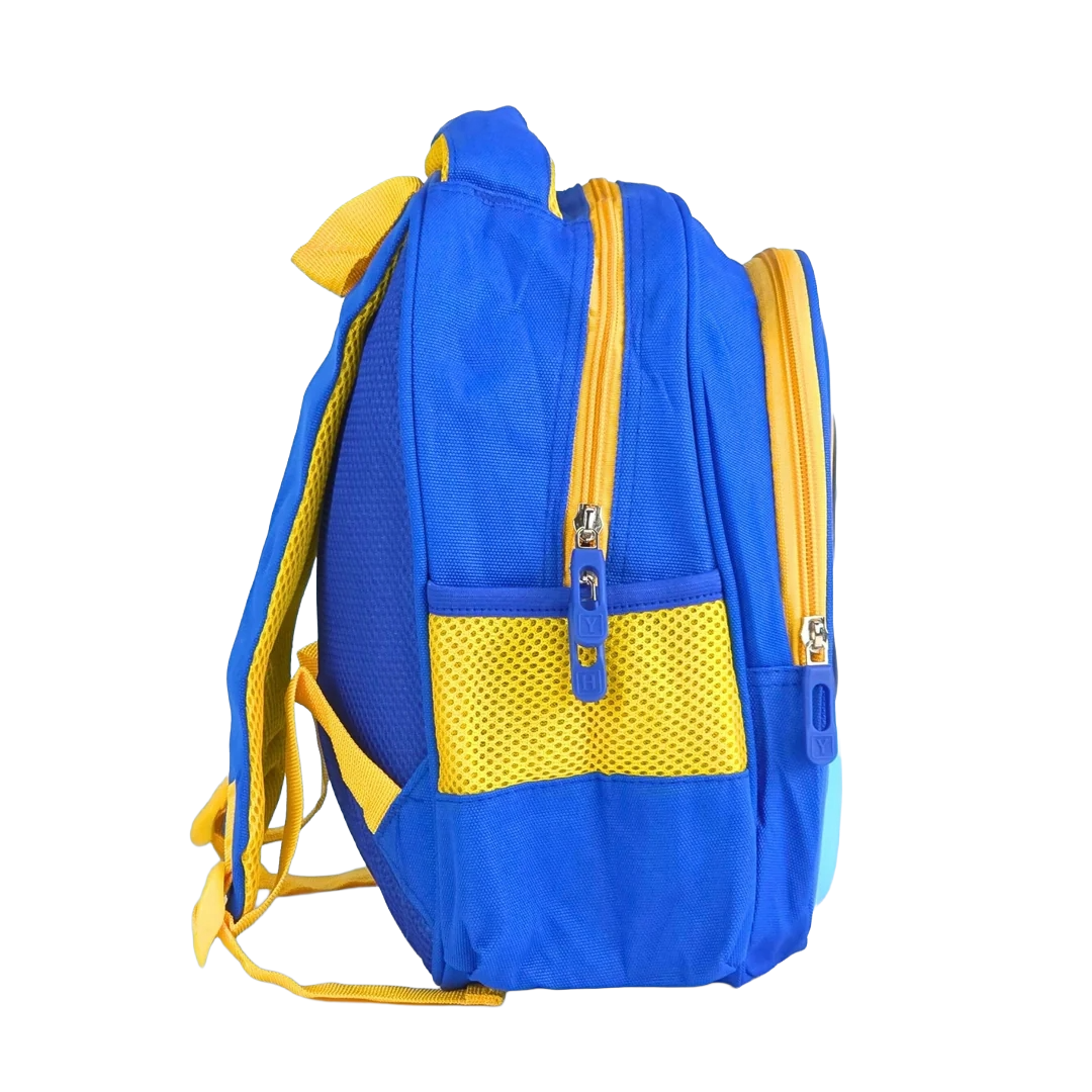 This bag comes with robust functionality, which is liked by parents.. It has a blue and yellow design, and the bear face with bold glasses on the front pocket makes it look cool for little learners.