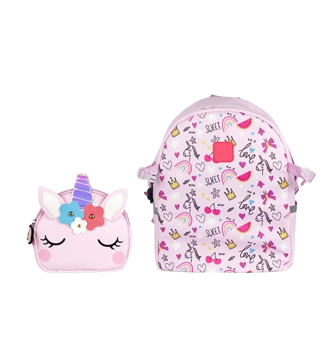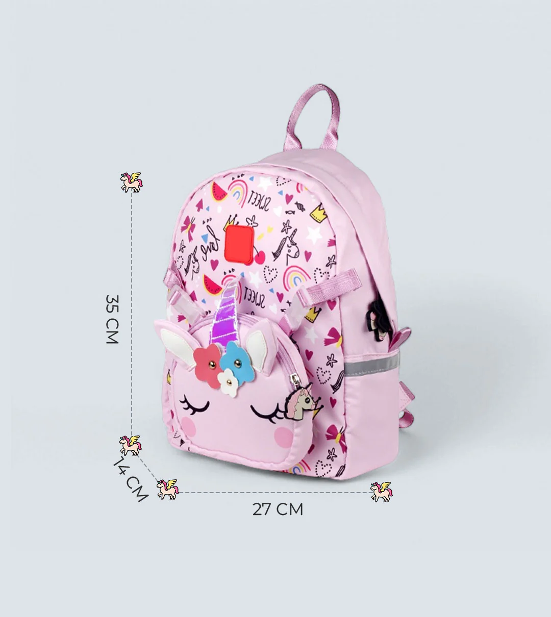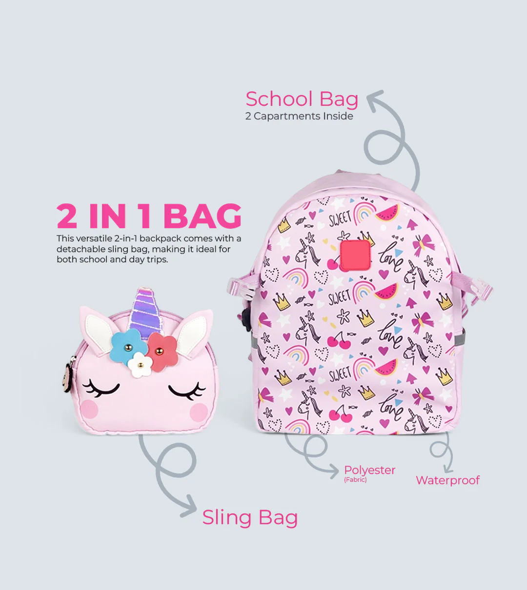 Spark magical adventures with the Unicorn Backpack Two-in-One by TYKLE! This versatile backpack comes with a detachable sling bag, perfect for school and playful outings. Made from soft, waterproof fabric, it features a spacious main compartment, adjustable straps, and an enchanting 3D unicorn design that’s lightweight, durable, and easy to clean.