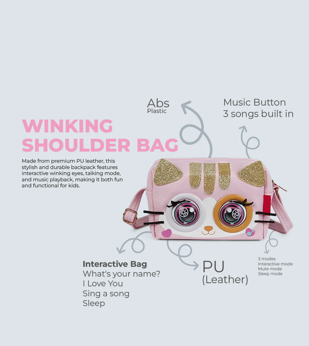 Tykle Winking Elf Shoulder Bag – Pink Cat | Interactive Winking Eyes, Talking Mode & Music Playback