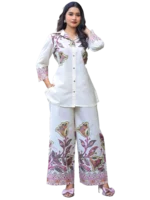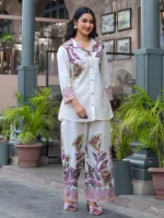 Home Women's Cord Sets Umrao Curved style mulmul fabric cream colour Co-ord Set
