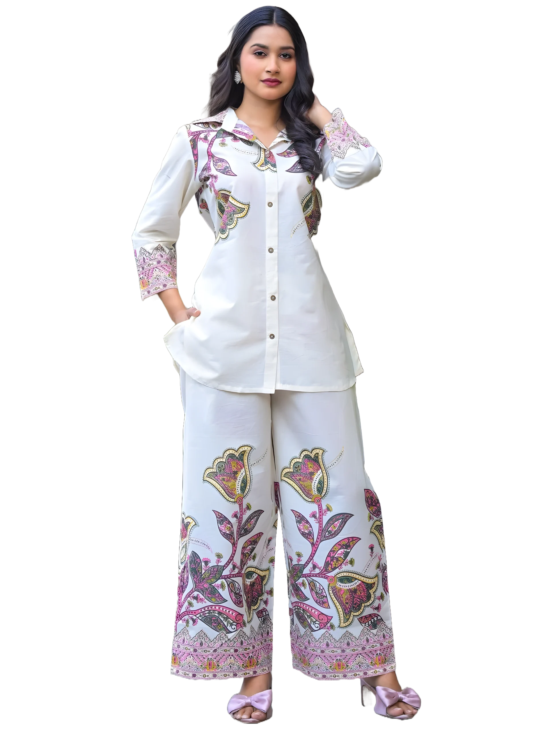 Home Women's Cord Sets Umrao Curved style mulmul fabric cream colour Co-ord Set