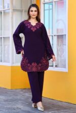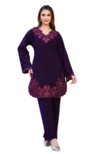 Experience Elegance with Umrao Designer co-ord set crafted from breathable woolen stuff. Designed with intricate threadwork and a flattering Silhouette , this piece blends comfort with timeless grace.