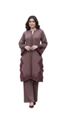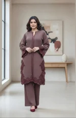 Elevate your Winter Elegance with our Woollen Embroidered Coat Ser , designed in a luxurious Pakistan-style silhouette. Crafted from Premium Wool Fabric, this set offers both warmth and sophistication. This beautiful embroidery detailing enhances it’s ethnic charm, while the graceful bell sleeves add a modern , flowy touch.