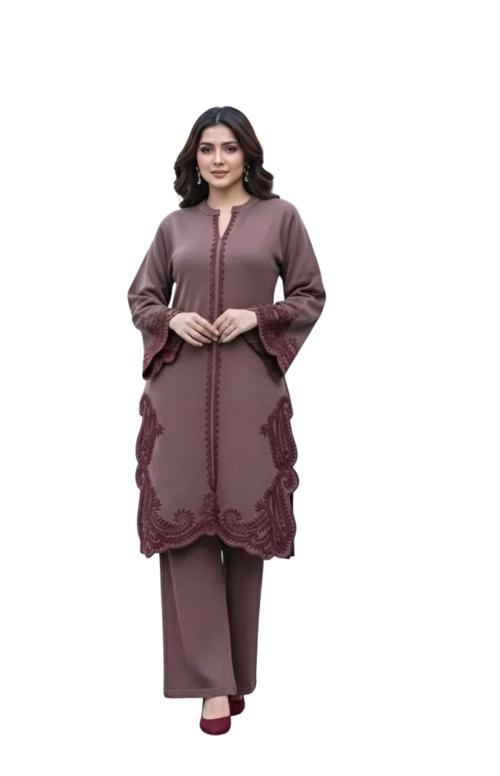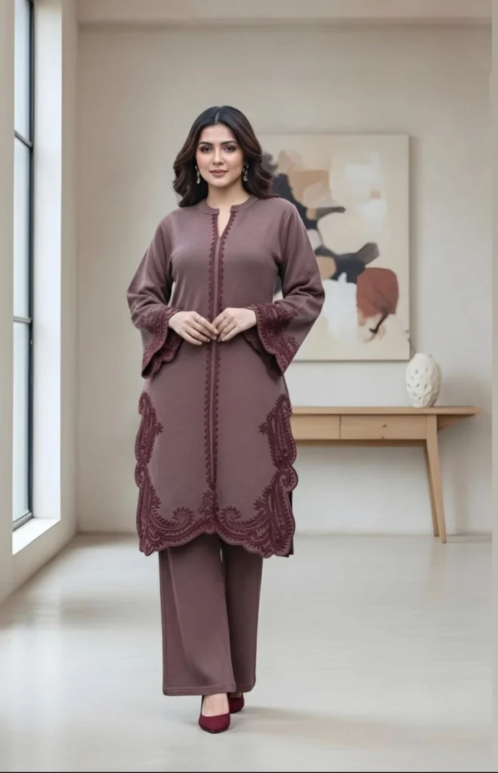 Elevate your Winter Elegance with our Woollen Embroidered Coat Ser , designed in a luxurious Pakistan-style silhouette. Crafted from Premium Wool Fabric, this set offers both warmth and sophistication. This beautiful embroidery detailing enhances it’s ethnic charm, while the graceful bell sleeves add a modern , flowy touch.